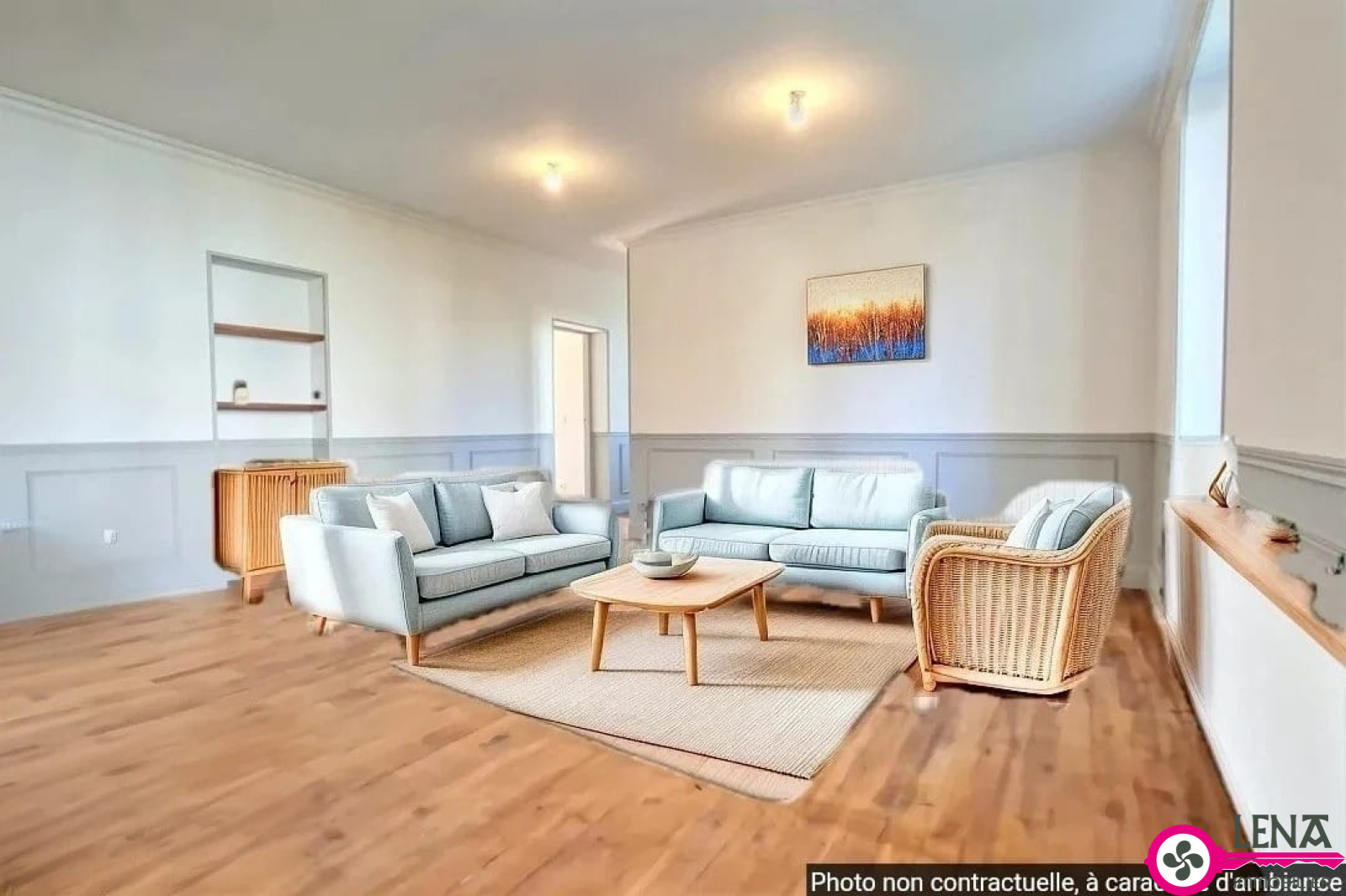 En exclusivité, à proximité du centre ville et toutes commodités, vous cherchez un appartement alliant charme de l'ancien et confort moderne ? Ce magnifique 4 pièces entièrement rénové vous séduira à coup sûr ! Situé au rez de chaussée surélevé d'une maison des années 70, ce bien bénéficie du cachet de l'ancien avec son parquet d'origine, sublimé par une rénovation complète et de qualité. L'appartement offre des volumes généreux. Caractéristiques principales : 3 chambres idéales pour une famille ou un espace télétravail, deux salles d'eau pour plus de confort au quotidien, grande pièce de vie conviviale avec cuisine ouverte aménagée et équipée, jardin partagé pour profiter des beaux jours. L'appartement se distingue par son style élégant avec ses moulures basses repintes, ses menuiseries modernes et ses rangements pratiques. Le mélange parfait entre authenticité et fonctionnalité. Une grande cave de plus de 10m² au sous-sol.