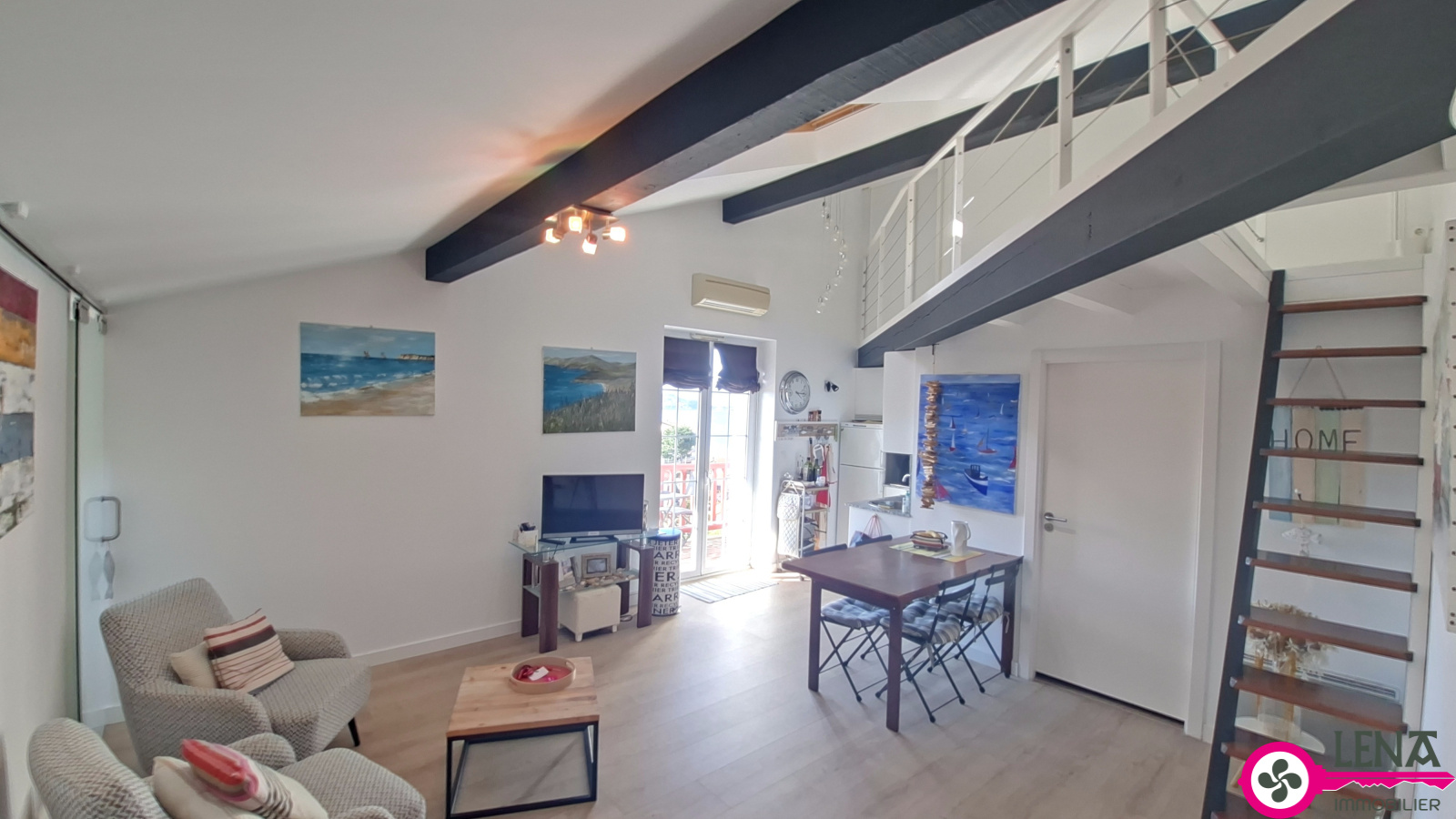 Coup de coeur assuré pour cet appartement atypique de 3 pièces situé au dernier étage d'un immeuble de standing. D'une superficie carrez de 45.41m² (75m² au sol), il séduit par son cachet unique et son ambiance chaleureuse. Mansardé et lumineux, il offre un espace de vie très agréable, une mezzanine aménagée au dessus du salon avec de nombreux rangements, ainsi que 2 chambres confortables équipées de vélux. Exposé plein ouest, il bénéficie d'une magnifique vue dégagée sur la mer et les montagnes. Aucun travaux à prévoir, l'appartement est en parfait état et prêt à accueillir ses nouveaux occupants.