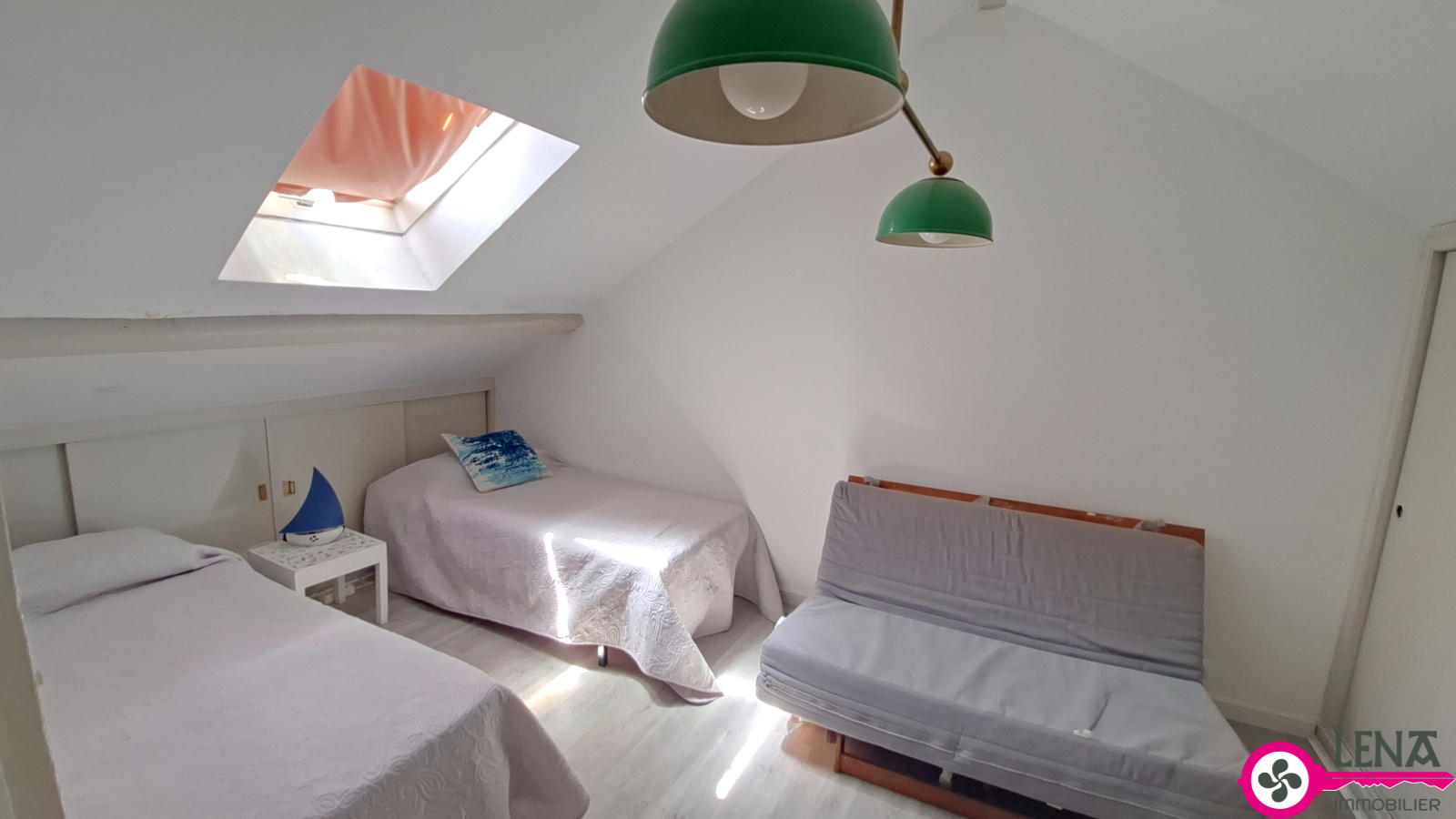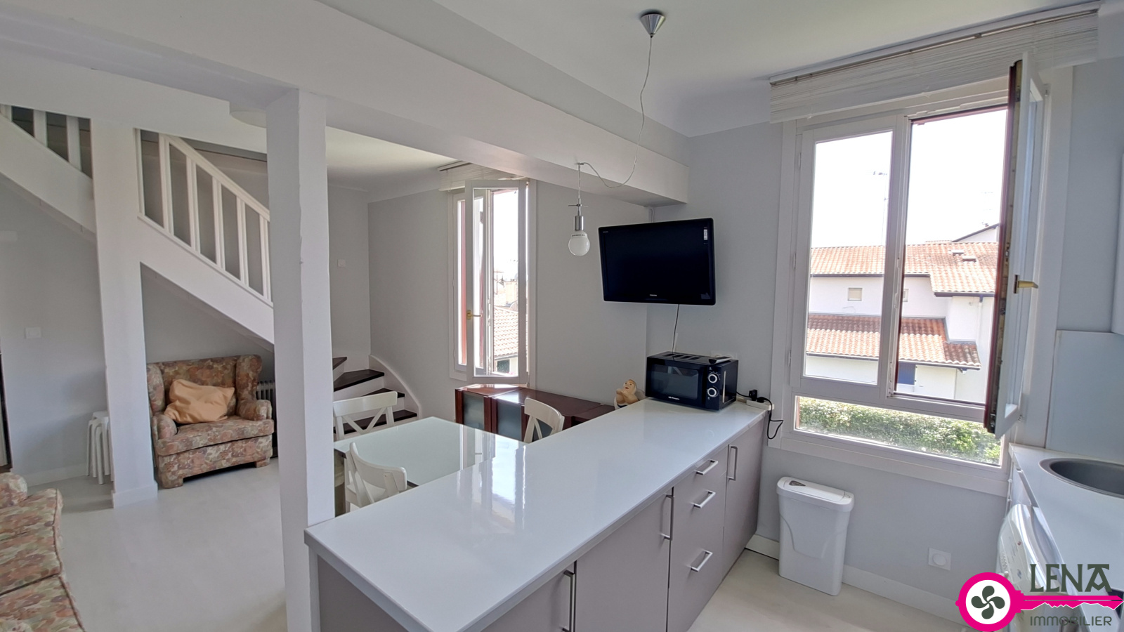 Hendaye plage, au dernier étage d'une petite copropriété (7 lots), ce duplex atypique de 42m² (loi carrez) + 10m² en mezzanine (hors carrez) vous séduira par sa situation et sa vue dégagée sans vis à vis. L'appartement en assez bon état, se compose d'un séjour lumineux, d'une cuisine ouverte équipée, d'un espace couchage au rez de chaussée et d'une mezzanine avec plusieurs couchages et placards agencés, Pas de balcon, ni terrasse, mais un charme certain, un emplacement privilégié et un bien rare sur le secteur.