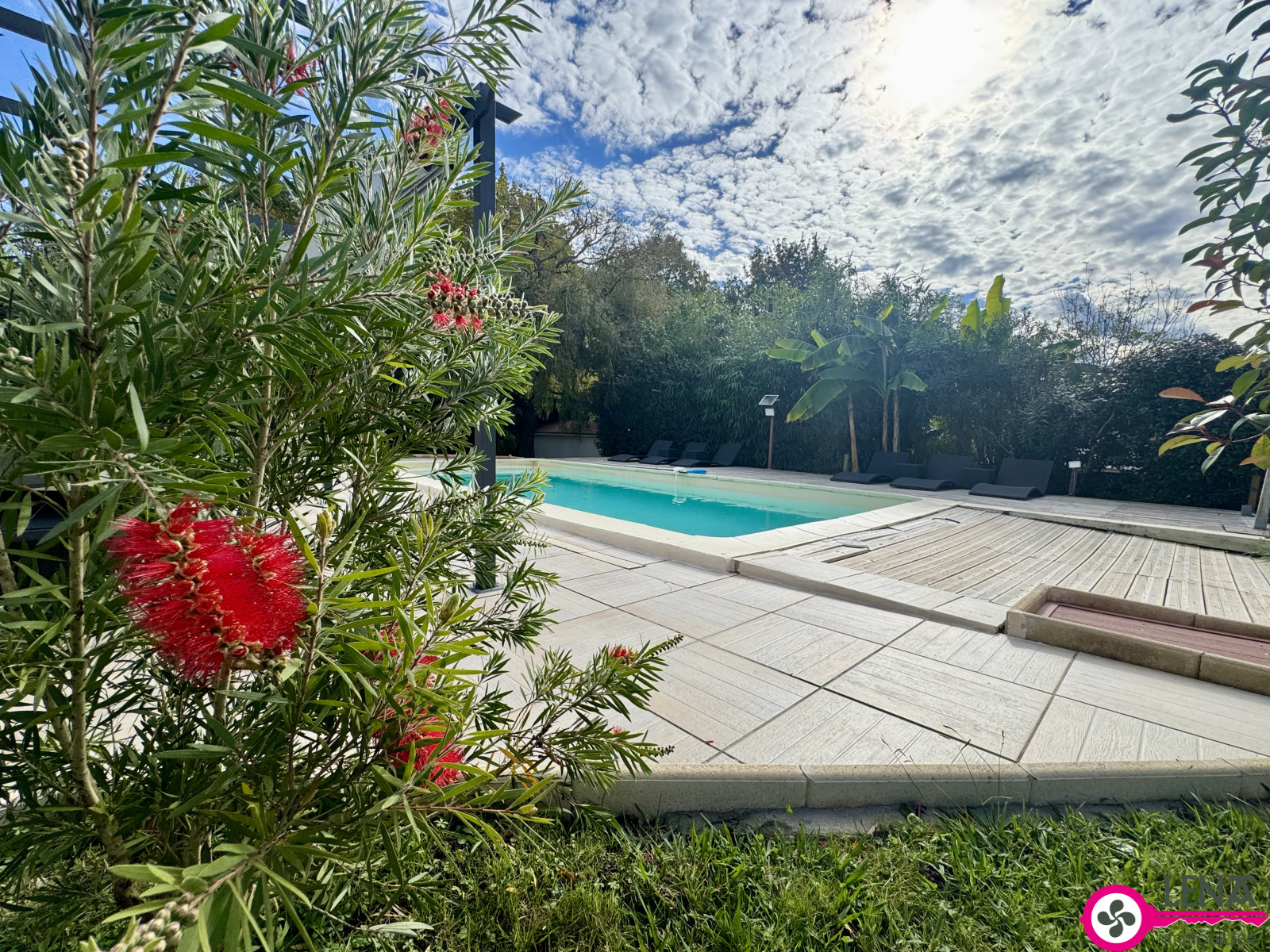 A l'extérieur, vous serez charmé par une superbe piscine, entourée d'un espace détente, sans vis-à-vis, dans un cadre verdoyant.